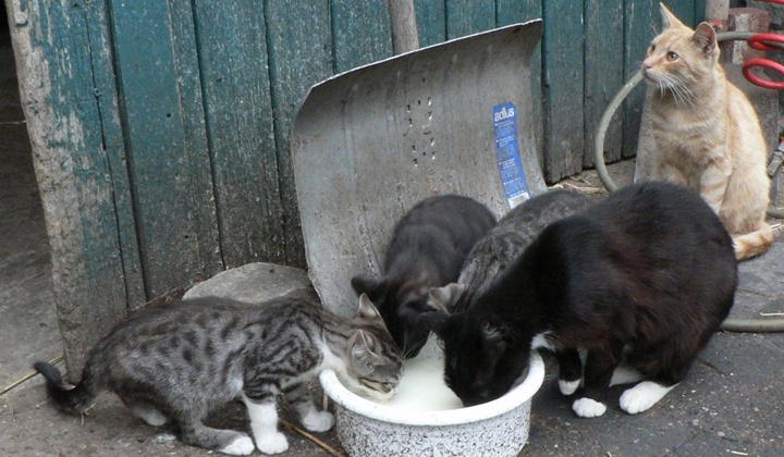 Fütterung von Kuhmilch ist zwar gutgemeint, führt aber oft zu Durchfall, da die Kuhmilch ganz anders zusammengesetzt ist, als die Katzenmilch.