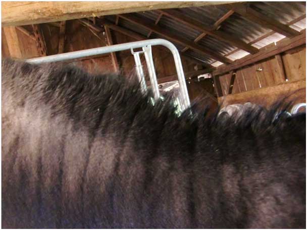 - Evtl. durch ehemaligen starken Wurmbefall oder durch derzeitig noch bestehenden Schimmelpilzbefall: Kotwasser und Juckreiz an Mähne und Schweif