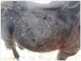 Da bei einem übergewichtigen Pony, bis zum Erreichen des Normalgewichtes, eine Rehegefahr besteht, wurde der aktuelle Mineralienmangel mit einem zuckerarmen Mineralfutter gedeckt. Durch die optimierte Versorgung des Ponys konnte es gefahrlos abnehmen und auch sein Immunsystem stabilisieren. So kann die Fellverfärbung und auch die Verpilzung bekämpft werden.